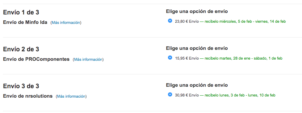 Häufig wird die Ware gar nicht aus dem Land Versand aus dem sie bestellt wurde. Durch das intelligente Logistiksystem wird die Bestellung aus einem Lager in Ihrer nähe geroutet und von dort aus verschickt. Das bedeutet Sie bestellen in Spanien, erhalten das Paket aber aus Deutschland. Dementsprechend schnell wird auch das Paket geliefert.