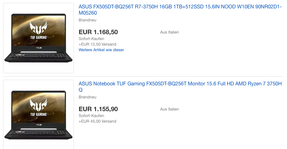 Bei Ebay variieren die Versandkosten für Bestellungen aus dem Ausland stark. So kostet das gleiche Produkt aus Italien einmal 12,50 Euro und einmal 45,00 Euro Versand. Eine Sortierung nach Preis ink. Versandkosten ist daher sinnvoll.