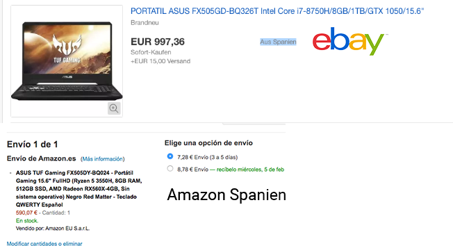EU-Versandkosten ebay vs. Amazon (direkt)